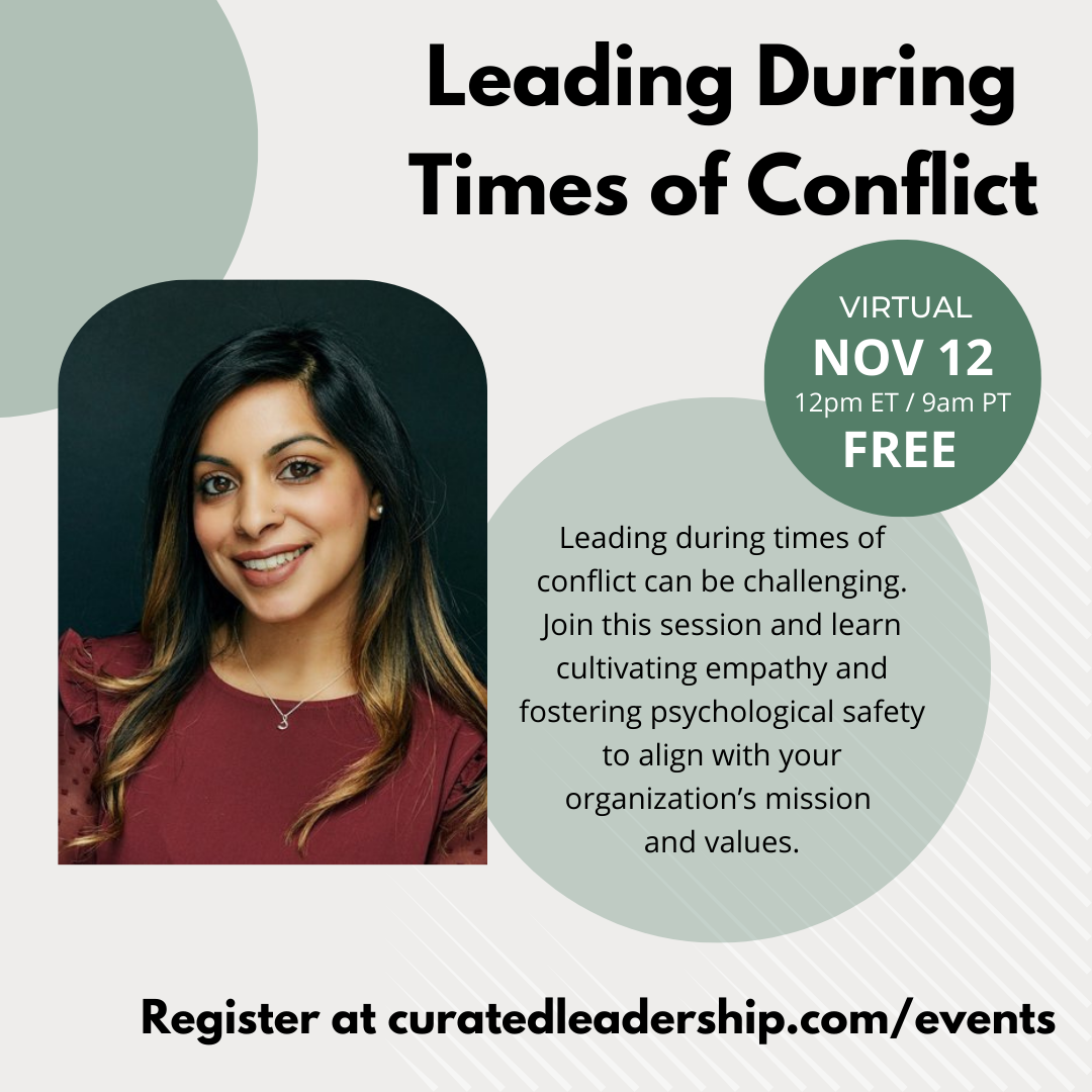 How well prepared do you feel to support your organization during times of global conflict? As a leader of an organization, what tools do you have to represent your organization internally and externally? We will discuss cultivating empathy, fostering psychological safety, and aligning with your organization’s mission and values.